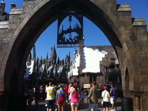 However it seemed to be the first ride on everyones list, as the flow of excited people moved like a wave past the Seuss Landing and The Lost Continent lands and straight to the end of a queue to get into the Harry Potter land. Yes that’s right! A queue to get into a section of a theme park! Something I have never seen before, people were given cards at the end of the queue with their time slot for which they would be allowed to enter the Wizarding World of Harry Potter later that day! It was kind of overwhelming the amount of people queueing and waiting just to step foot in the village of Hogsmeade, I could barely keep my excitement for the days events hidden, but luckily for me my family who had turned up a bit earlier already got me a ticket to get into the land at 10.30, so after a short wait we got past the barriers and were able to step foot into the world of Harry Potter.